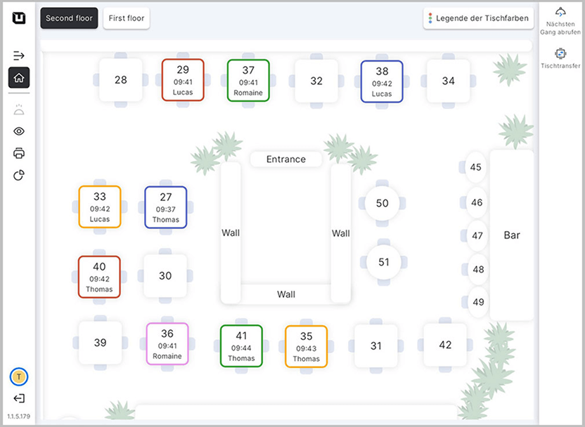 Kolorowe statusy pokazują, czy goście są przy przystawce, daniu głównym czy deserze. Symbole oznaczają brak aktywności lub prośbę o rachunek – dzięki temu obsługa natychmiast wie, co się dzieje na sali, a serwis jest płynny.