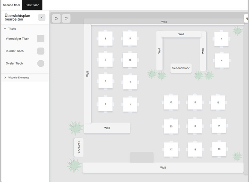 od układu stolików po akcje w panelu bocznym. Możesz włączać i wyłączać funkcje w zależności od potrzeb oraz projektować układ sali tak, aby idealnie odzwierciedlał rzeczywisty plan lokalu.
